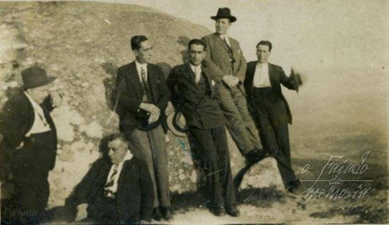 Nesta foto en Lobeira temos, a dereita, a Valentín Briones, que co tempo foi alcalde de Vilagarcia. O máis alto dos que están de pé é Segundo Abalo, que tamen co tempo, chegaría a ser concelleiro de Izquierda Republicana no concello Vilagarcián. Segundo Abalo tívo un ultramarinos moi importante na, daquela, praza do Obelisco ou da República