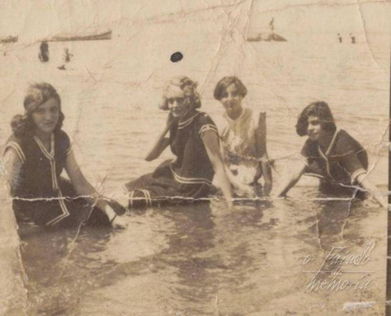 Mitica e inolvidable pedra da Concha, que un mal dia nin se saben as razons dinamitaron. Na imaxen Cachumbala e unhas amigas