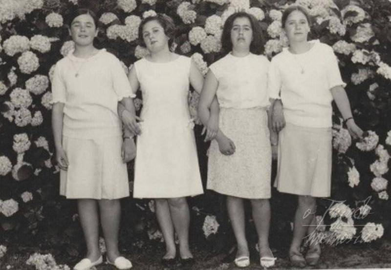 Efectivamente, las de los lados son las hijas de D. Pepe Tarrío de Villajuan (detrás del Restaurante Chocolate) mi profesor durante un verano(?)a donde mi padre Florentino Espina me envió por haber suspendido. Sus hijas eran también alumnas de él y dos personas encantadoras.