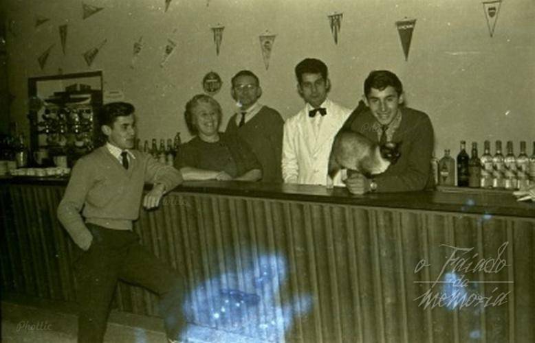 Esta foto es aproximadamente sobre el años 60 o 63 que fue la epoca en que regentamos el Balneario. En ell estamos detras de la barra mi madre, mi padre, minhermano Angel(Chencho) y mi hwermano Juliocon la gatita Chispita que nos la habian traidos mis primos de Madrid. Fuera de la barra y de pie, estoy yo Carlos.