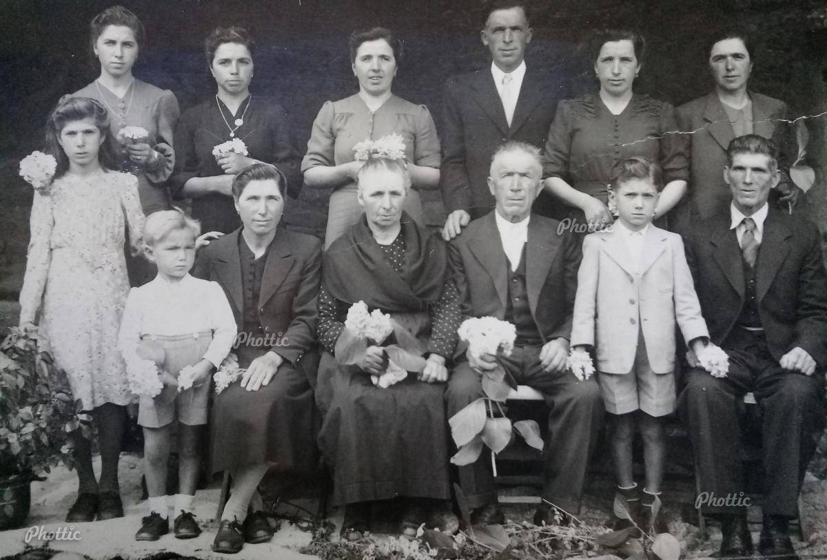 De izquierda a derecha, arriba: Preciosa Pose Amado, Rufina Pose Amado, María Josefa Pose Amado, Manuel Pose Amado, María Dolores Pose Amado, María Pose Amado. Abajo: Herminda Rial Pose, Desiderio Rial Pose, Soledad Pose Amado, Rosa Amado Pastoriza, José Pose Antelo, Manuel Rial Pose, Perfecto Rial Castro. Mi madre, Rufina y mi tía Josefa, aún viven, en Argentina, con 96 y 99 años respectivamente.