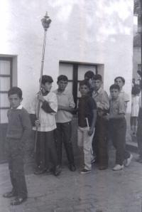 Queni Cortes no xardin da parroquia