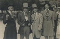 Vemos a Carmucha e Tomas Alcalde, os seus cuñados Moncha e Quique Jimenez con Jose Enrique, tras eles Maruja e os seus gemelos, e por ultimo os seus queridos veciños do Castro muller e filla de Rivas Briones. Nos brazos de Moncha esta o seu neno, o noso Jose Luis Dominguez, non queremos saltar o neno rubiño que se trata de Javier Jimenez