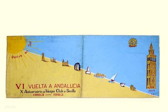 Faja de la VI vuelta a Andalucía coincidiendo con el X Aniversario del Vespa Club de Sevilla, propiedad de Marcos Pérez, Presidente del refundado Vespa Club Vigo en los años 80.