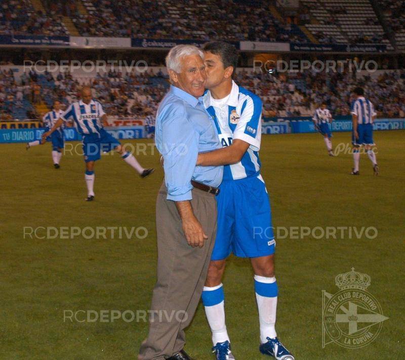 Bebeto bica a Arsenio Iglesias nos prolegómenos do Trofeo Juan Acuña de 2006, no que se celebrou o Centenario da fundación do Clube con un partido entre os Veteranos do Deportivo e o Súper Dépor, disputado o 4 de setembro de 2006 no Estadio de Riazor.