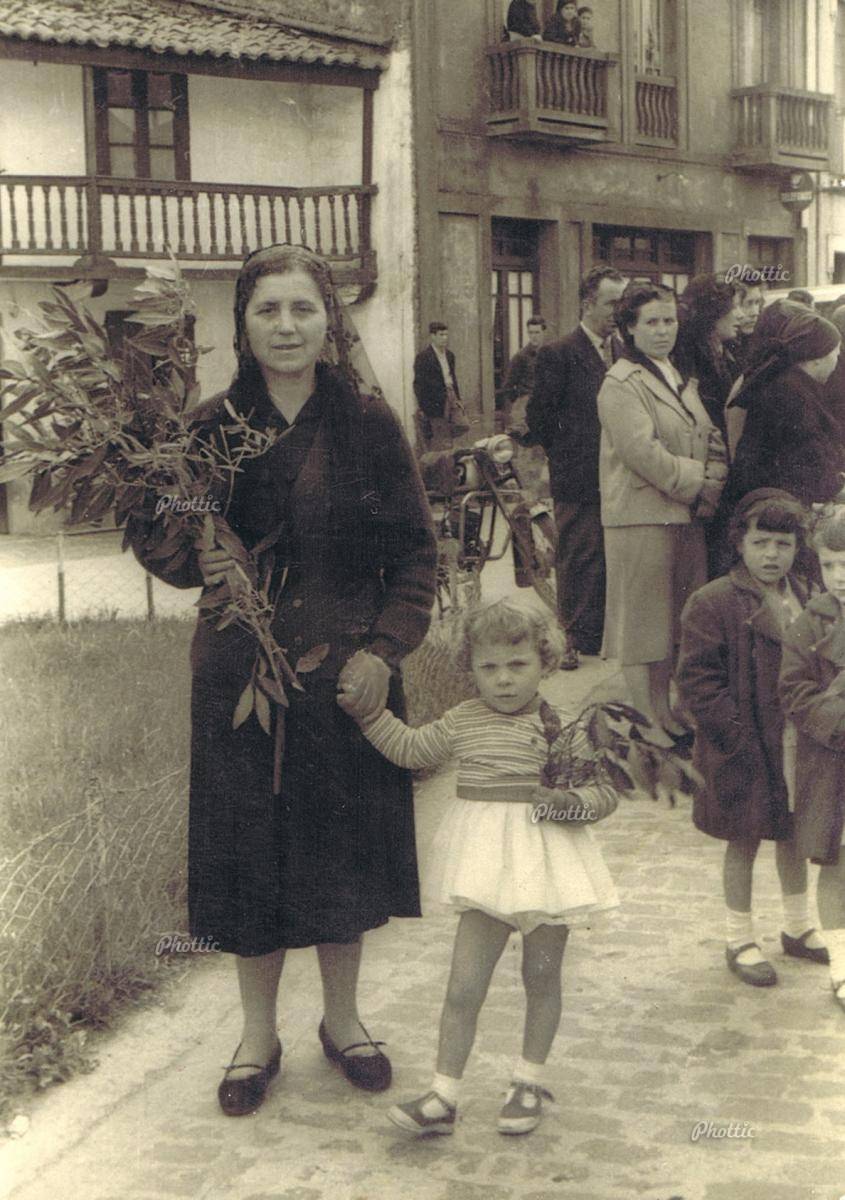 Señora e nena na Praza da Capela - 1957