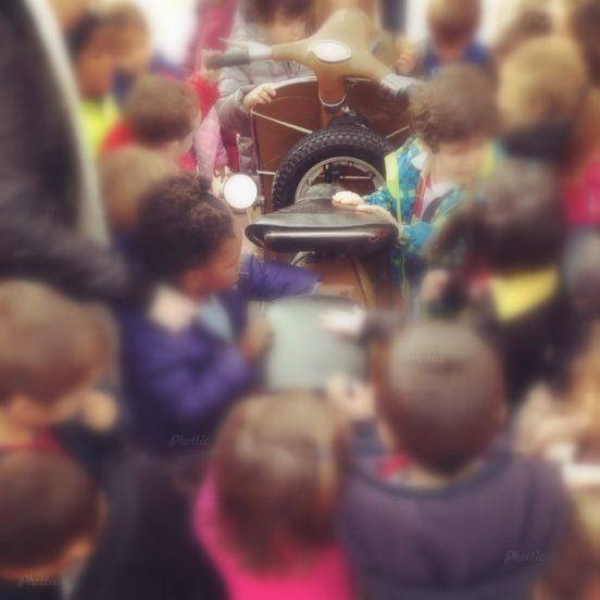 Los niños también tuvieron la oportunidad de hacer preguntas, colorerar una ficha con la silueta de una vespa y ver algunas fotos de nuestro archivo vortual. Como no podía ser de otra forma, alguno hasta reconoció... que su abuelo, tenía una igual.