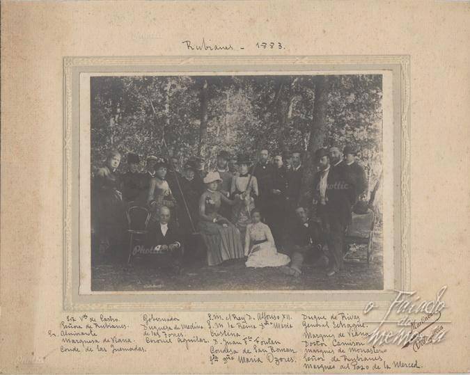 Alfonso XII no Pazo de Rubians no ano 1883, na foto se describen os seus acompañantes