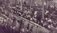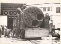 Visita do embaixador de Arxentina Pedro Radío a fabrica Massó Hermanos S.A. de Cangas entre os anos 1948-50, acompañados polo Presidente de Unión de Fabricantes de Conservas de Galicia , Antonio Alfageme del Busto e Gaspar Massó, José María e Adolfo Quirós.