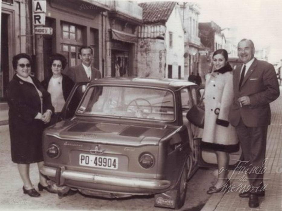 Na fotografia vemos a nosa Margarita Coello acompañada dos seus pais e dos seus amigos, Celso Callon e Encarnita. A imaxen tamen sirve para ver dous dos negocios que existian na calle Rey Daviña, a fruteria de Esperanza e Pepe, e a merceria de Luisa, nai dos Penide.