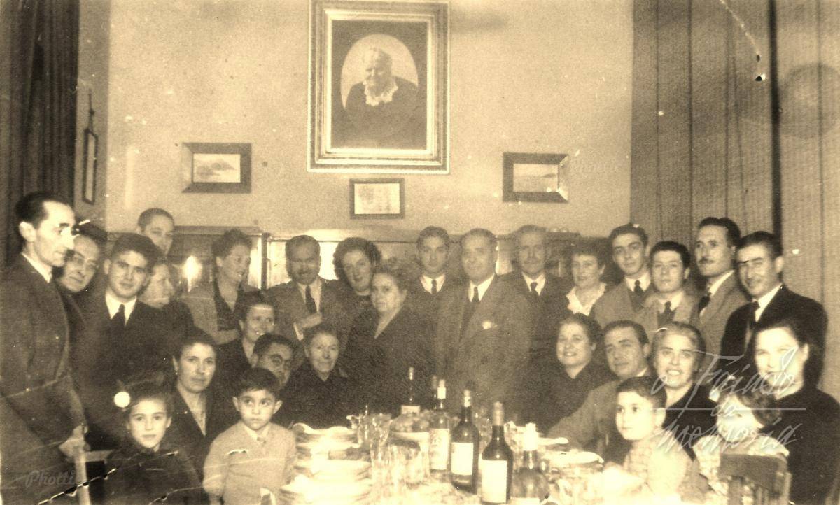 Agasallaban a nai da familia Villaverde Rey, a Rosalia Rey Barreiro, xa avanzada en idade, natural da Arxentina, tivera nove fillos entre eles Elpidio Villaverde, primeiro Alcalde da Republica en Vilagarcia, outro fillo, Jesus, mais coñecido por Achiño, foi concelleiro. Na imaxen vemos a Rosalia na cabeceira da mesa rodeada de unha parte da sua familia,os fillos Jesus, Luis e Paco, as noras, Leonor, Cachumbala e Piluca, pensamos que a esquerda é o Doctor Anduiza, que nos anos coarenta creou nun edificio modernista a caron da Parroquial un hospital ca especialidad de xinecoloxia.. O edificio, afortunadamente ainda existe.