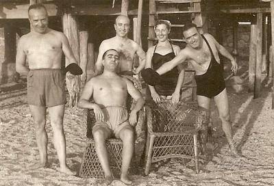 Esos si que eran traxes de baño,para ser do ano 51 iban moi destapados,estan na praia da concha no balneario donde viviron meus Pais de recién casados.O do bañador más güay e meu tio Pepe Chirinos ,miña Nai Maria Fernández, meu tio Suso Chirinos o seu lado "Pico" o máis comodo meu Pai Paco. E magoa que non o conservaran sería una reliquia.