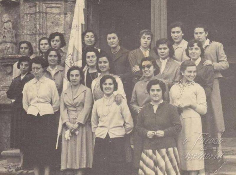 Arriba drch.Maruja la Patuca,M.Carmen Melón,M.Elena Rey,Antonia Moledo,Rosita Castro,Lucila la Pirixela,M.Carmen Ameneiro,Pilarín Abad,Leonor,Mari Baltar(debajo).Fila 2:_Maruchi Hierro,Conchita Martínez,Teresita Rios,Gelines Hierro,Lourdes Portela,?,? de Trabanca,Conchela Garrido,Abajo:María Josefa la Cestillera.(mujer de Piruso,fallecida).¡Ahí queda eso¡Qué jovencitas eran todas.