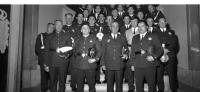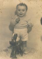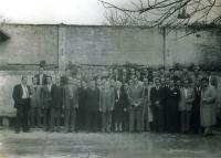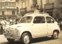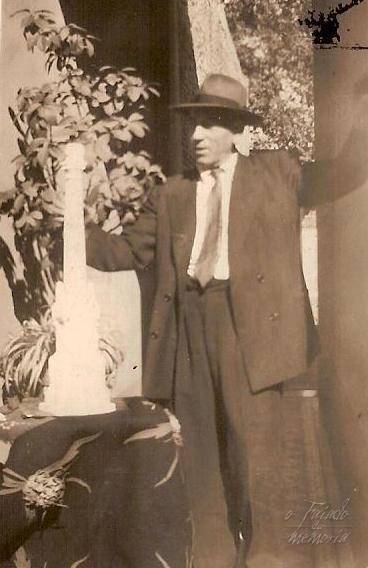 : Foto sacada en 1951. Ramón Fontenla Bua, mostrando a maqueta do Obelisco que fixo en Vilagarcia
