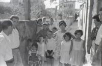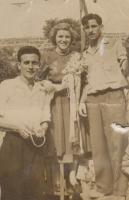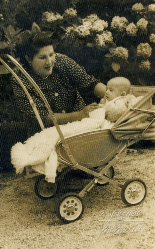 Da Torre, nai de Manolo e Purita Oubiña, a vemos na foto con un dos seus bebes en aqueles coches de capota espectaculares de bonitos