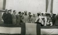 O rapáz que está a carón do señor apoiado no macetero na deréita da imaxe, -co clarinete- é, quen co paso dos anos, pasóu a ser o Sr. Moncho Tubio,-que repartia caramelos entre @s nen@s do povo-, pai dos hirmáns Moncho, i Manolo, compoñentes da orquestra CORTEGADA..Saudos de Roberto Ocaña