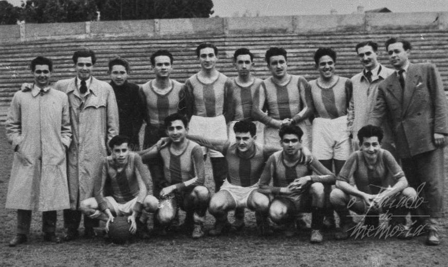 De la fotografía por arriba el primero por la izquierda es Agra, después Pepe Bazaco, x,x, ¿Sánchez Agustino?, Melchor Varela, Victoriano Sobrido, otro Varela y x,x.