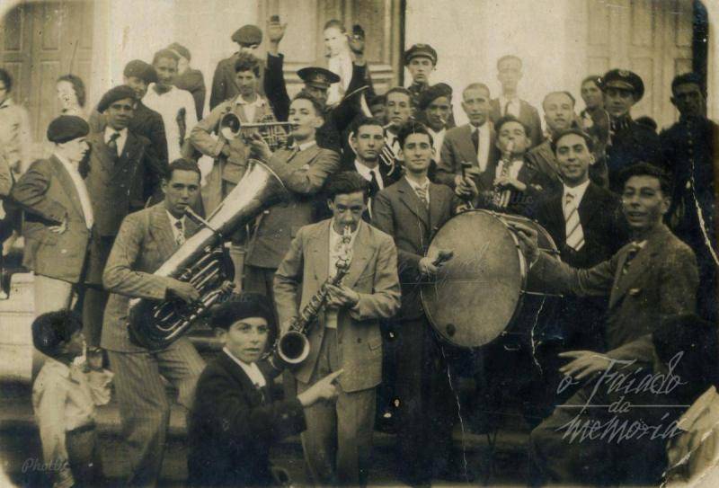 Na Guadalupe ano 1931 diante o do saxo e Martin Varela, co trombon Elias Penide e detras do bombo Juan Perez Troche
