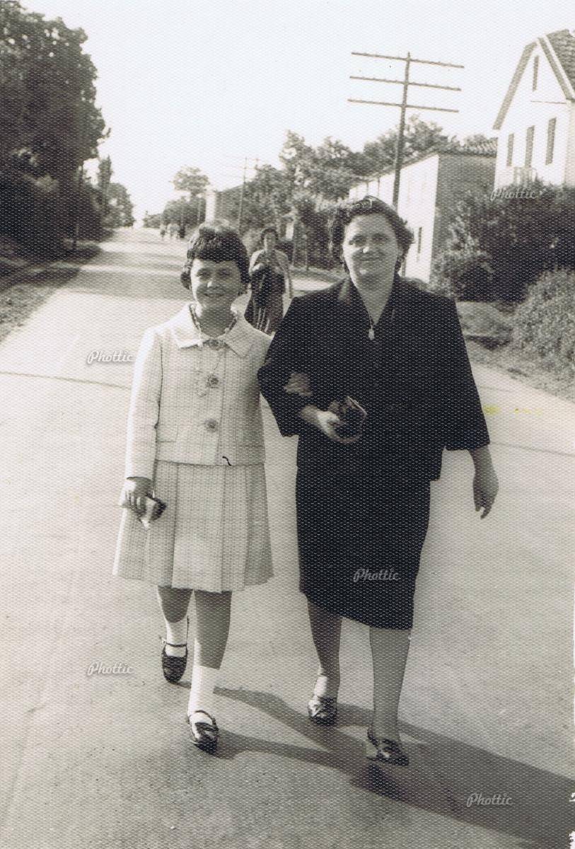 De camiño a misa, María e Matilde en Tabeaio - 1959
