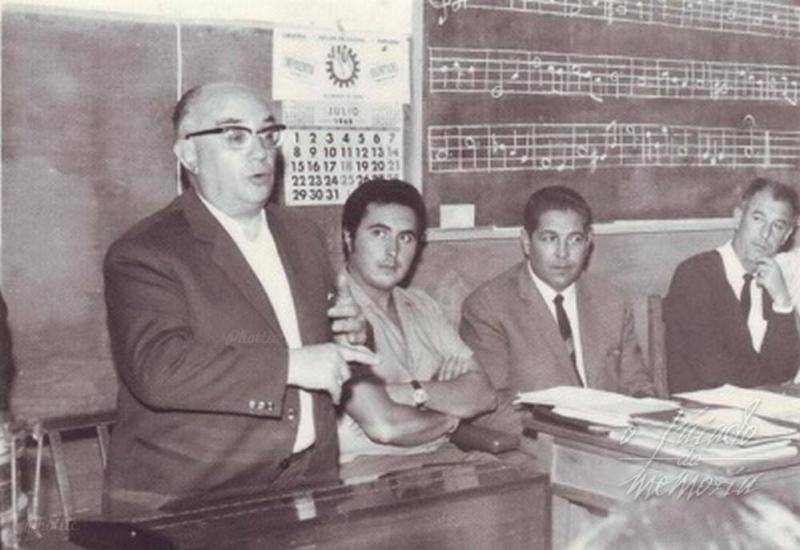 No era el instituto, era en la academia municipal de música que estaba en el edificio de la plaza de la Pescadería. Don Vicente era concejal por eso está en la foto y seguramente, por el mes del calendario, corresponde a la clausura del curso.