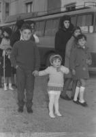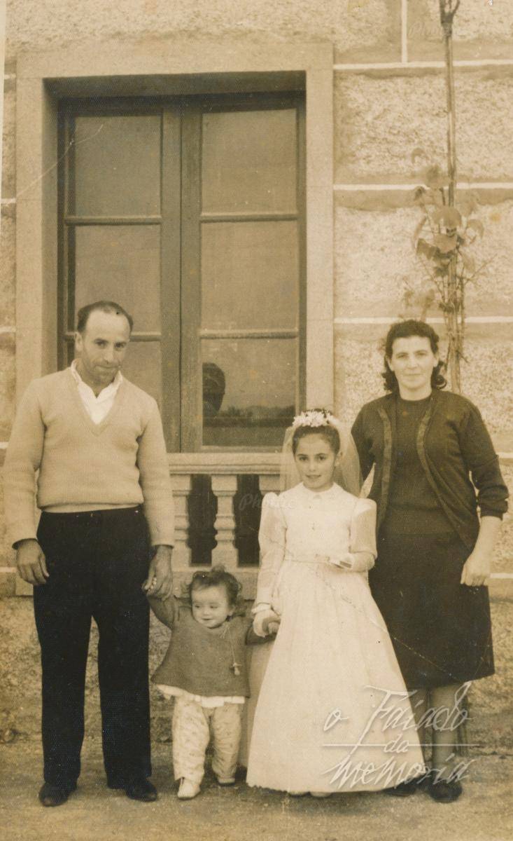 Esta é a comunión da Lourdes (Celia Lourdes González Piñeiro), nela está, señora Lola e señor Moncho (Ramón González Santiago) e , a nena máis pequeña (Josefa González Piñeiro). A foto está tomada na Lomba (Avenida Agustín Romero, 92), coa casa xa rematada e a taberna aberta. Data: 1962.