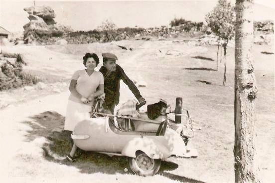 El primer medio de transporte de “Manoliño o zapateiro”, como era conocido, fue una bicicleta. Un vecino próximo al lugar de su zapatería apareció un día con una “Mobylette” diciéndole: “Manoliño, tes que comprar unha como esta; é igual que a bicicleta pero con motor”, y de este modo fue como Manoliño se paso a la “Mobylette”. Trabajaba duro en la zapatería y un buen día la familia aumentó con la llegada de su hijo Agustín (1959). Entonces llegó el momento de cambiar ciertos aspectos de su vida y abandonó la “Mobylette” y se decidió por una Vespa con sidecar. El modelo que eligió fue una de 125 de finales de los años cincuenta que compró de segunda mano y con matrícula OR-6667. Manuel recordando esta historia me cuenta que dicha vespa estaba trucada a 150 y el sidecar era de la firma Secovega, todo ello de color gris, aunque no lo recuerda con suficiente precisión. Lo que si me afirma con rotundidad es que pasado un tiempo la pintó de color naranja, según los gustos de aquella época.