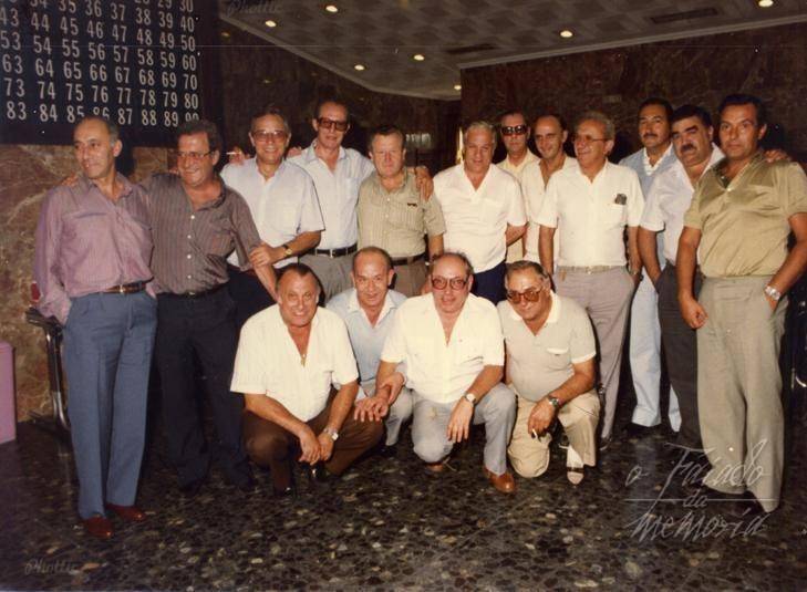 Aunque el lugar es un bingo por el tablero numerado de la izquierda y posiblemente seria el que estaba en el Leon XIII, me parece más una reunión de amigos que un grupo de bingueros. Son por arriba y a la izquierda, Pampin, X,Juan José Rodriguez, Tarano Cuervo, X,X,X, Farruco conocido en Villajuan como Pescadilla, Juan Blanco, José Luis Sánchez, Severino González y Pepe Bazaco. Abajo por la izquierda Pepe Varela, un abogado, Moncho Otero y Gerardo Prego. Cándido.