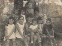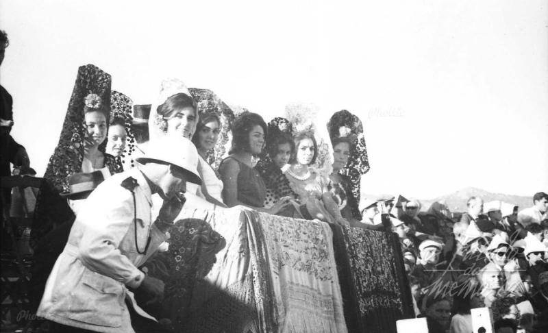 La plaza se colocaba por la parte de atrás de la Comandancia, mas o menos. Recuerdo que Petinal era muy aficionado. En la fotografía, en la parte de atrás está Mary Carmen Agra y Piluca Villaverde y delante dos hijas de Justo García y una de las de Carrasco. Mes de verano por los sombreros del público. Cándido
