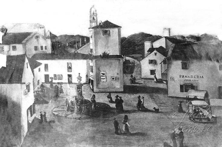 Esta fuente tuvo dos ubicaciones. La primera era la Puerta del Sol y estaba delante de lo fué más tarde la joyeria Silva, a finales del siglo XIX. A principios del XX la trasladaron a la Plaza del Castro, donde está ahora y con escasa fortuna por la chapuza de restauración que están haciendo. Por el dibujo de las casas, esta última debe ser la ubicación que aparece en el grabado. Candido