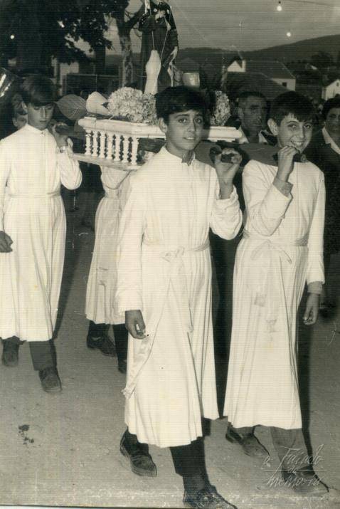En el frente Kiko y Jose a la derecha, atrás y a la izquierda Tito. Llevaban a San Roque en las fiestas de Sobradelo. Un saludo, Beatriz