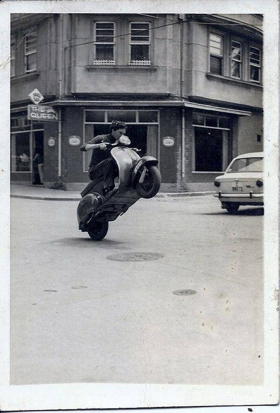 Nada más cumplir los 18 años, Cholo paga 900 pesetas de su bolsillo y sorprende a su padre con la obtención del permiso para conducir. Obviamente se presentó a las pruebas, que también se realizaban cerca de su domicilio, conduciendo “la sevillana”, la Vespa de su padre. Es también en aquella fecha en la que compra su primera moto de segunda mano, una Vespa 125L de color crema (C-40.619). Al poco tiempo aprovechando otra compra, esta vez una Vespa 160, que debido a su mal estado, solo aprovechara el motor para darle un poco más de potencia.