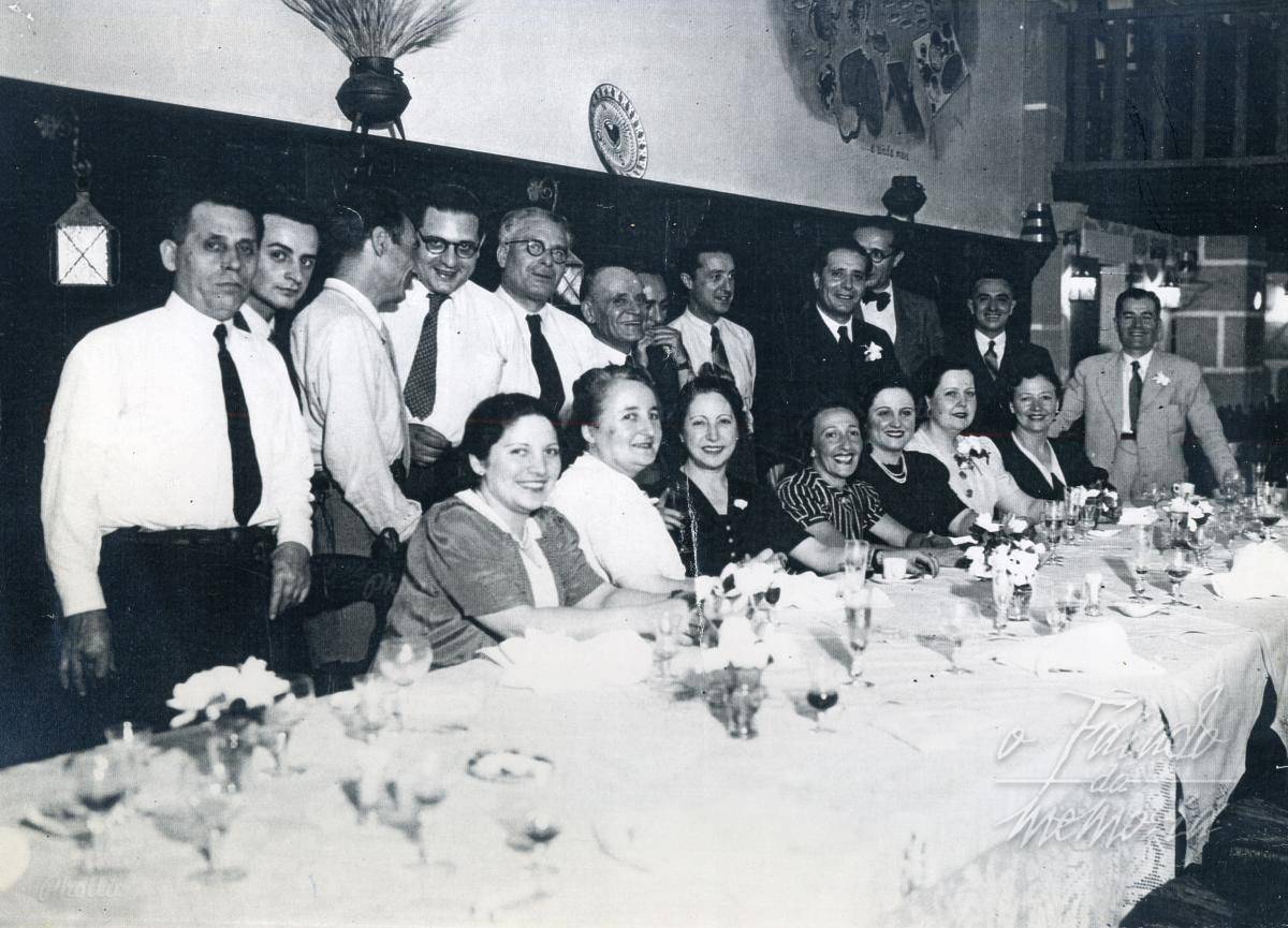Cando Elpidio Villaverde fuxiu de Francia, a causa era a segunda guerra mundial, a o chegar a Buenos Aires inaugurou un bar, A Casa da Troya, foi lugar de reunion de outros exiliados, na imaxen a o fondo Castelao e sentada Virginia, tamen Rosina e Elpidio, asi como o irman de Elpidio, Luis Villaverde.
