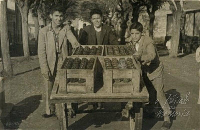 Nesta foto vemos ó sempre lembrado, Armando, xestionador de varios traballos ó longo da súa vida, repartidor de gaseosas, dono de kiosco e de varios oficios máis, tirando dun carriño , indo cara o campo da Lomba nun domingo de futbol disposto a vender "o que fixera falla". A sua dereita Jose Luis Meaños, "Culís", que, o transcurrir do tempo, convertiríase no xenro de Armando. Casou con Celita