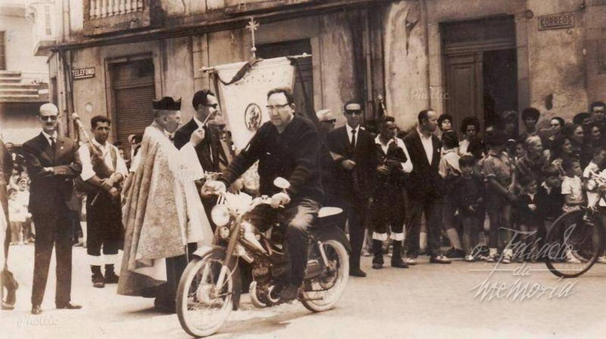 O dia do Santo Cristobo do ano 1961, vemos a Ramon Abuin na sua moto que desde aquel momento estaba bendecida