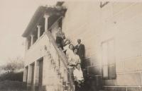 De izqda. a dcha.: 1 ¿ ?; 2. Isabel Castromán Loureiro; 3. Mª Lourdes Castromán Olveira, “Maruja” o “La Mansaroña”, hija de Santiago Castromán García, “El Mansaroño” y de Juana Olveira Ferreirós, “Juanita la de Isorna”; 3. ¿ ?; 4. Mª Concepción Castromán Olveira, mi madre, “Doña Concha”, con los mismos motes que su hermana; 5. ¿Elisa Sánchez, “Lisuca”?