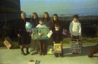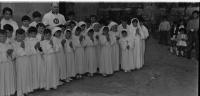Menudo ramillete de carrilexas,típicos modelitos y peinados de la época.Yo creo que la que está en el medio de Tia Lordes y mamá,es Maruxa Sánchez y la de la izquierda su hermana que no recuerdo el nombre,Mª del Carmen ,Conchela o cualquiera de las mayores se ha de acordar.