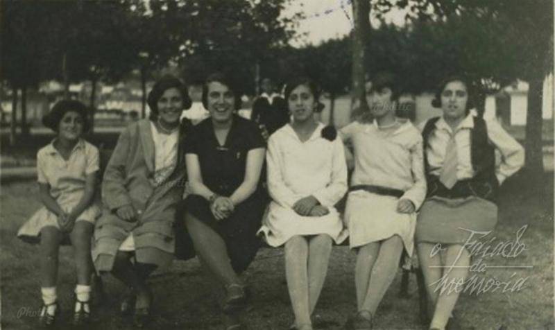 As primas Castroman de farra no Carril. Isabel Castroman segunda pola esquerda foi unha autentica beleza con unha vida especialmente interesante. Isabel casou con Ramon Martinez Lopez .