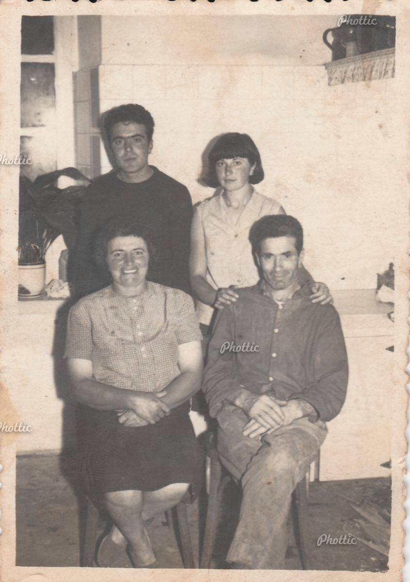 Sentados Manola de Modia e Andrés de Hilaria cos seus fillo Julio e Maruja Na súa casa da Modia
