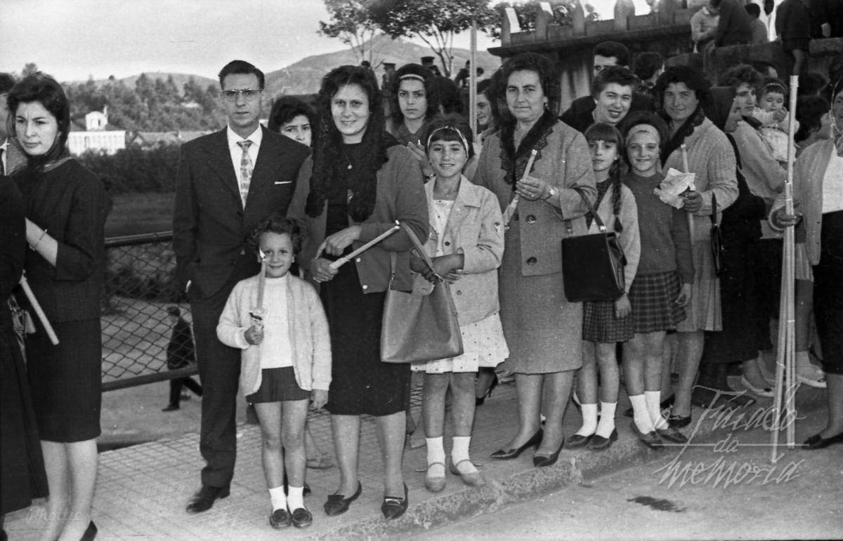 Estamos no ano mil novecentos sesenta e dous, diante a esquerda Marivi Perez e a continuacion Sanmartin sastre de Rubians ca sua familia