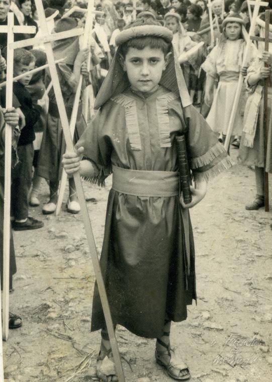 Representacion do evanxelista san Mateo, na procesion da semana Santa en Sobradelo en Abril do 1965. Procesion moi vistosa e populosa en aqueles tempos