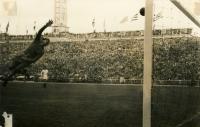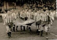 Joanet atrapa el esférico ante Gabriel Lezcano, en un lance del encuentro de la 28ª jornada del Campeonato de Primera División de la Temporada 1969-1970, disputado el 5 de abril de 1970 en el Estadio de Riazor. El Celta venció al Deportivo por 0-1. El recinto presentaba una pequeña grada provisional en el fondo del Pabellón de los Deportes.