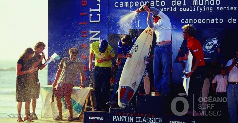 El hawaiano Shawn Sutton se proclamó campeón del Pantín Classic de 2001, año en el que conseguía la primera de sus dos victorias consecutiva en el campeonato ya que al año siguiente vovería a repetir en lo más alto del podio, En la imagen aparece rociando con champán a los otros finalistas (a su izquierda Matt Jones -cuarto-, y Eneko Acero -segundo-, y a su derecha el australiano Sunny Russell, tercero).