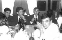 O que vai con Paco Prieto --que ricas gaseosas tiña-- no motocarro, paréceme Laméiro que era cartéiro..A carón do cura de Vilagarcia José Torrado ,ollamos a Alejandro Castiñéira --,traballador do sindicato-- ..No centro, está Juan Marcos .--,taxista-- que vivia na rua Alexander Bóveda..Saudos
