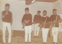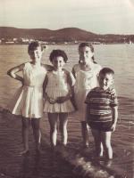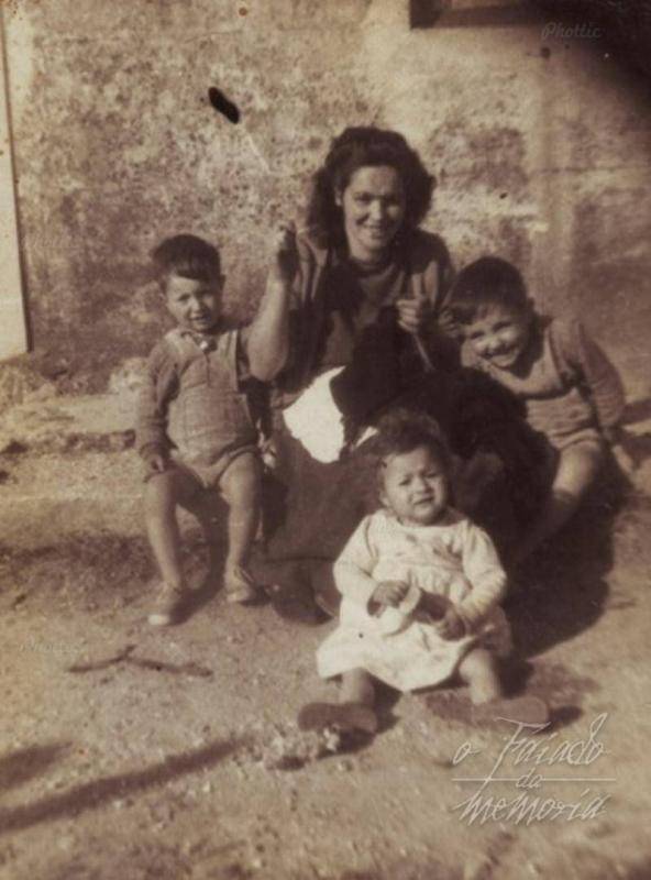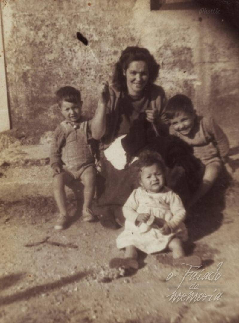 Mamá ,con Tito a la izquierda de 3 años,Quinso de cuatro a la derecha, Mara delante de 14 meses .