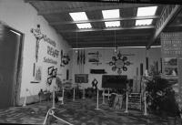 Na sua porta cos fillos, Rosa Berride aproveita pra coser.
