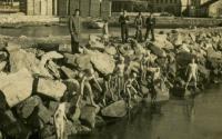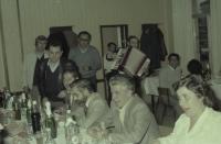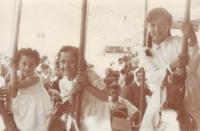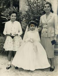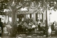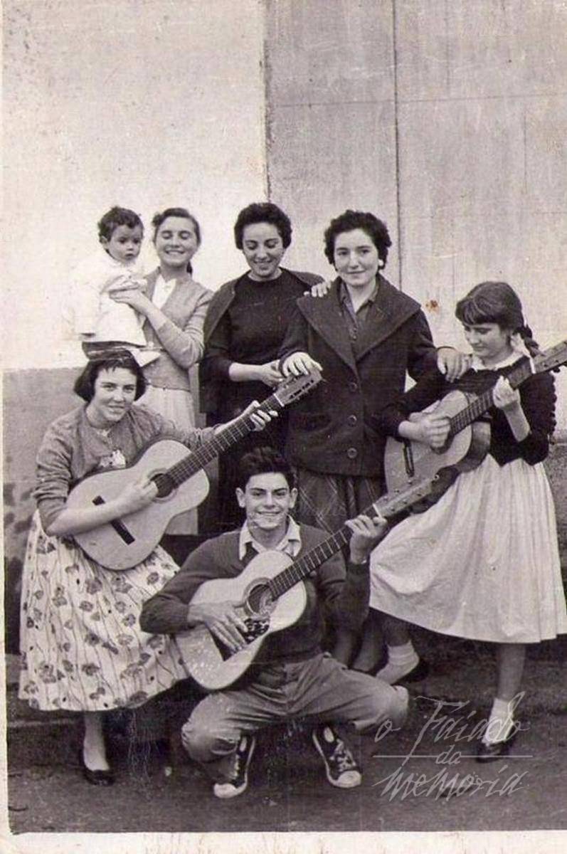 Na imaxen a dereita arriba Florenchu, Lolita Esther, Margarita e Conchela con un bebe no colo, a seguinte moza non a recoñecemos, e o rapaz ca guitarra e Jose Luis fillo de Rosa a de Chaves