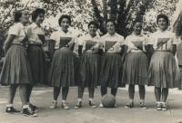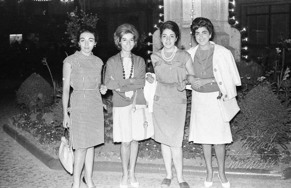 Durante as festas da vila un grupo de amigas se retratan a o pe do Obelisco
