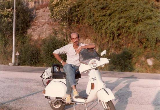 Esta es la historia de mi primera Vespa. Eran años de “movida” y de cambios. Mi primera moto fue esta Vespa P200E (OR-0527-G), comprada con los ahorros de mis primeras nóminas y una aportación de mi padre (50%) a fondo perdido. Creo recordar que en 1983, con los accesorios, el precio final fue de unas 205.000 pts. Las fotos fueron tomadas en las proximidades del Embalse de Velle-Ourense, con mi novia entonces, que hoy es mi mujer, María José Fernández. Regresábamos de bañarnos y tomar el sol en las piscinas de Oira, próximas al río Miño. Juntos disfrutamos de esta Vespa durante muchos años. Todavía hoy en día, de vez en cuando, damos una vuelta en ella ya que mi cuñado es ahora su actual dueño.