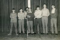 Amadeo, Jaureguizar, Taboada, Dasilva, Piñeiro y el gobernador civil Ignacio García López. El chaval que está al lado de Victoriano estuvo en la Joyeria Rapariz y era muy simpatico y trabajador. Cándido
