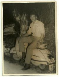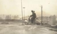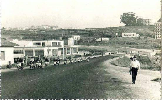 Gracias a la labor recopilatoria de Fotos antiguas de La Coruña ha llegado hasta nuestro archivo esta fotografía cortesía de Pucho. Datada probablemente a principios de los años 60, corresponde sin lugar a dudas de una salida organizada por un Vespa Club (seguramente correspondiente a la éopca dorada del Vespa Club la Coruña, quizás acompañado del Vespa Club El Ferrol o el Vespa Club Lugo, con los que solían juntarse habitualmente). La fotografía está tomada en la curva de Casablanca, entrando a Los Castros, con el monte de As Moas como telón de fondo. Una curva muy peligrosa, escenario de numerosos accidentes. Quizás el más sonado es el recogido por el Diario ABC en 1974, donde se relata el choque frontal entre un camión y un autobús, que acabó con 6 fallecidos y 50 heridos. El edificio que aparece a la derecha, conocido popularmente como "El Rascacielos", ha sido recientemente demolido. También a la derecha se puede apreciar el muro de "La Finca del Moro" con sus inconfundibles eucaliptos. A la izquierda por su parte, podemos contemplar el barrio del Castrillón Antiguo. Que a nadie se le escape las "nuevas" instalaciones del concesionario Renault de Eulalio Mora Florido.